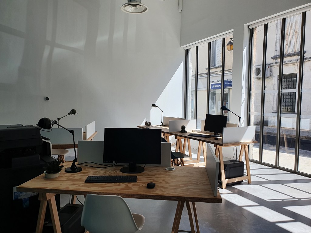 Le Garage est un espace de travail partagé de la Mairie de Montbron. Possibilité de louer un bureau dans l’espace ouvert, un privé ou la salle de réunion. Location à la demi-journée, journée ou au mois.