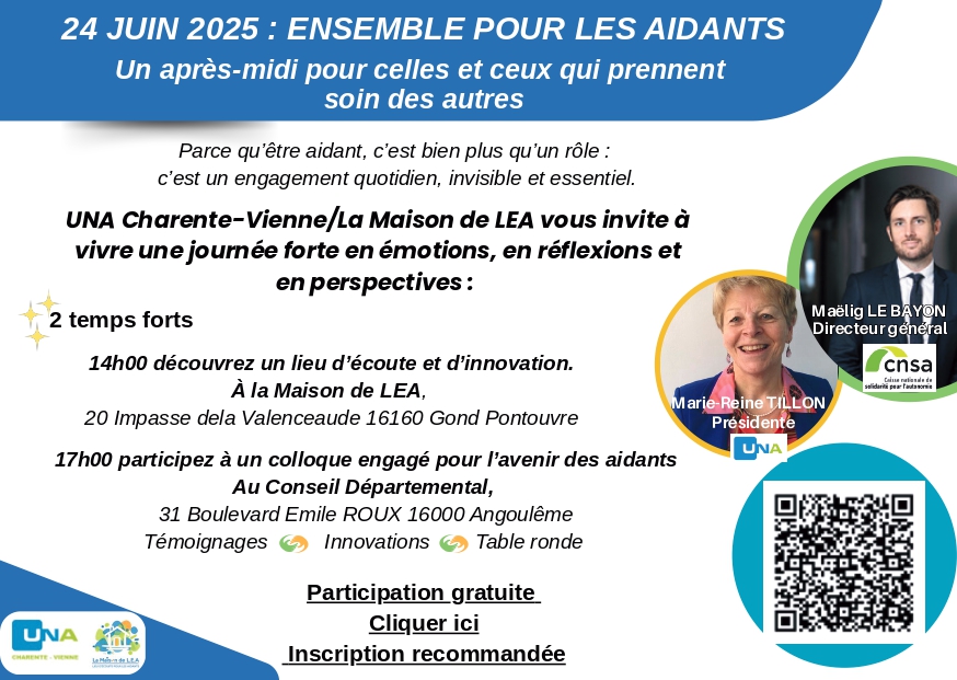En remerciant chaleureusement les intervenants du programme, les partenaires Co organisateurs de l’évènement et les membres de la dynamique qui soutient les Aidants en Charente :